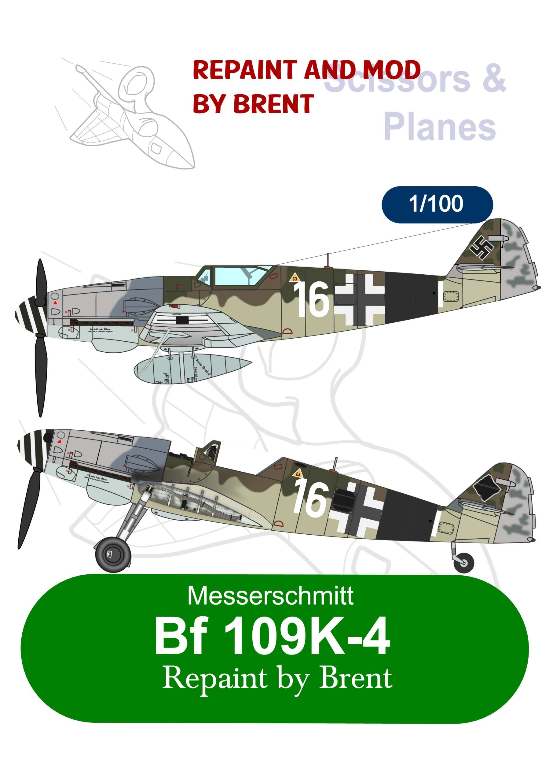 This Messerschmitt Bf-109K4 “White 16” Paper model is a repaint and mod by Brent’s Repaints.