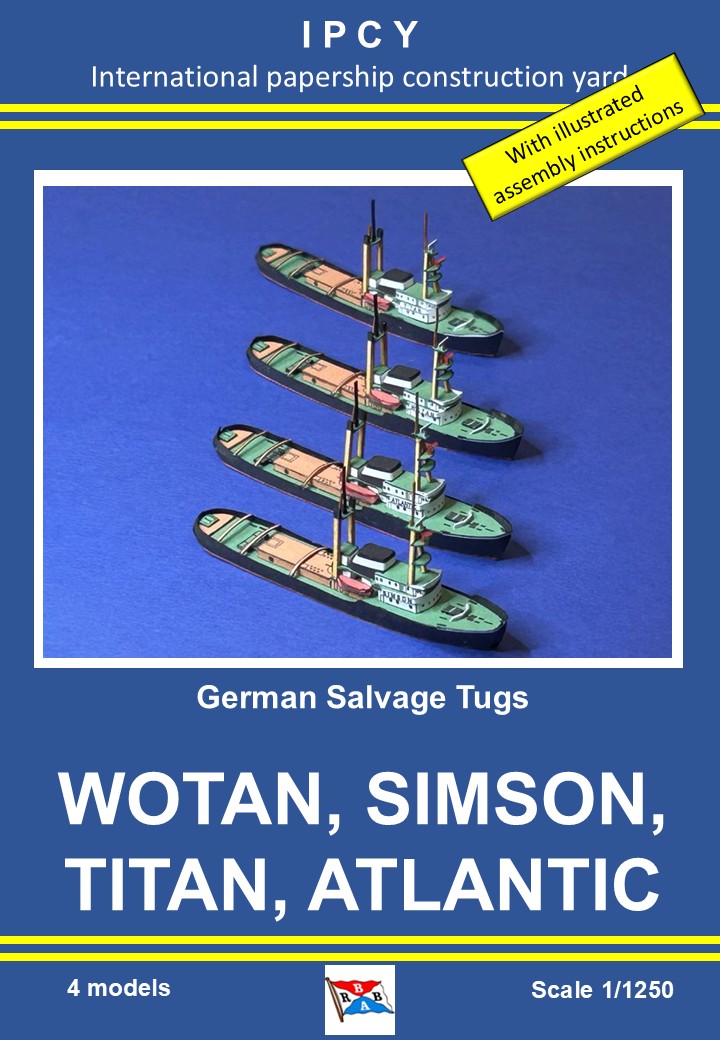1/1250 German Salvage tugs WOTAN, SIMSON, TITAN and ATLANTIC, Paper Model
