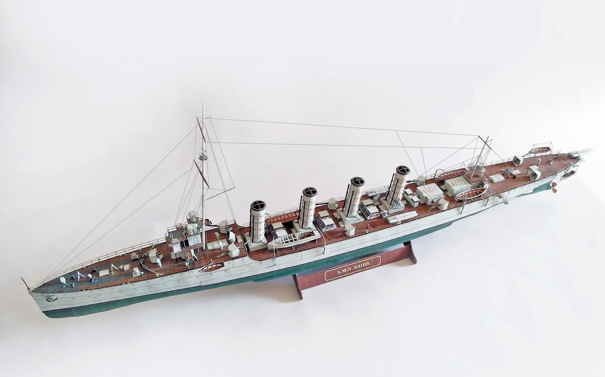 SMS Saida was a Novara-class scout cruiser built for the Austro-Hungarian Navy in the early 1910s. The ship was armed with a main battery of nine 10 cm (3.9 in) guns, and six twin 53.3 cm (21.0 in) torpedo tubeswere added in 1917. She was built by the Cantiere Navale Triestino shipyard from 1911 to 1914, entering service days after the outbreak of World War I. She spent the war as a flotilla leader, conducting raids and patrols in the narrow waters of the Adriatic Sea.