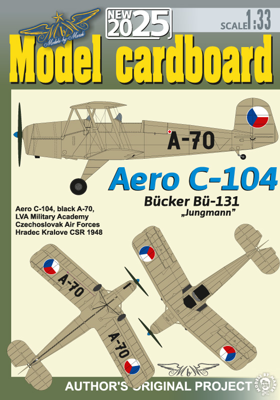This paper model builds the Aero C-104 which was in service with the LVA Military Academy of the Czechoslovakian Air Force during 1948. This aircraft was identified with A-70 on the fuselage.