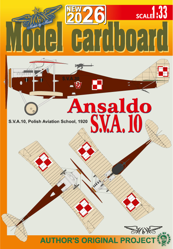 This paper model builds the Ansaldo SVA 10 in service with the Polish Aviation School during 1920.