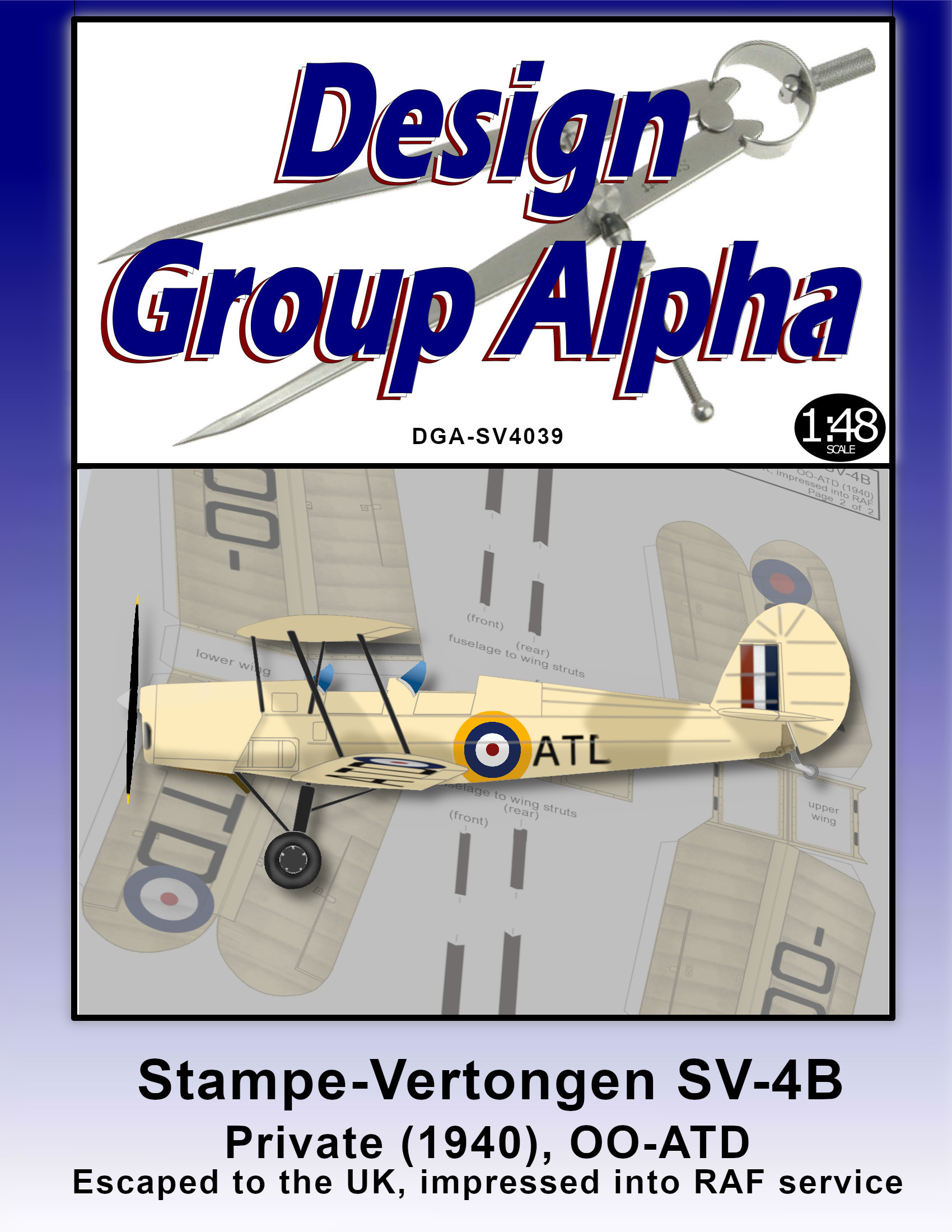 This model of the SV-4 builds a private (1940), Belgian registry OO-ATD, which escaped to the UK and impressed into RAF service.