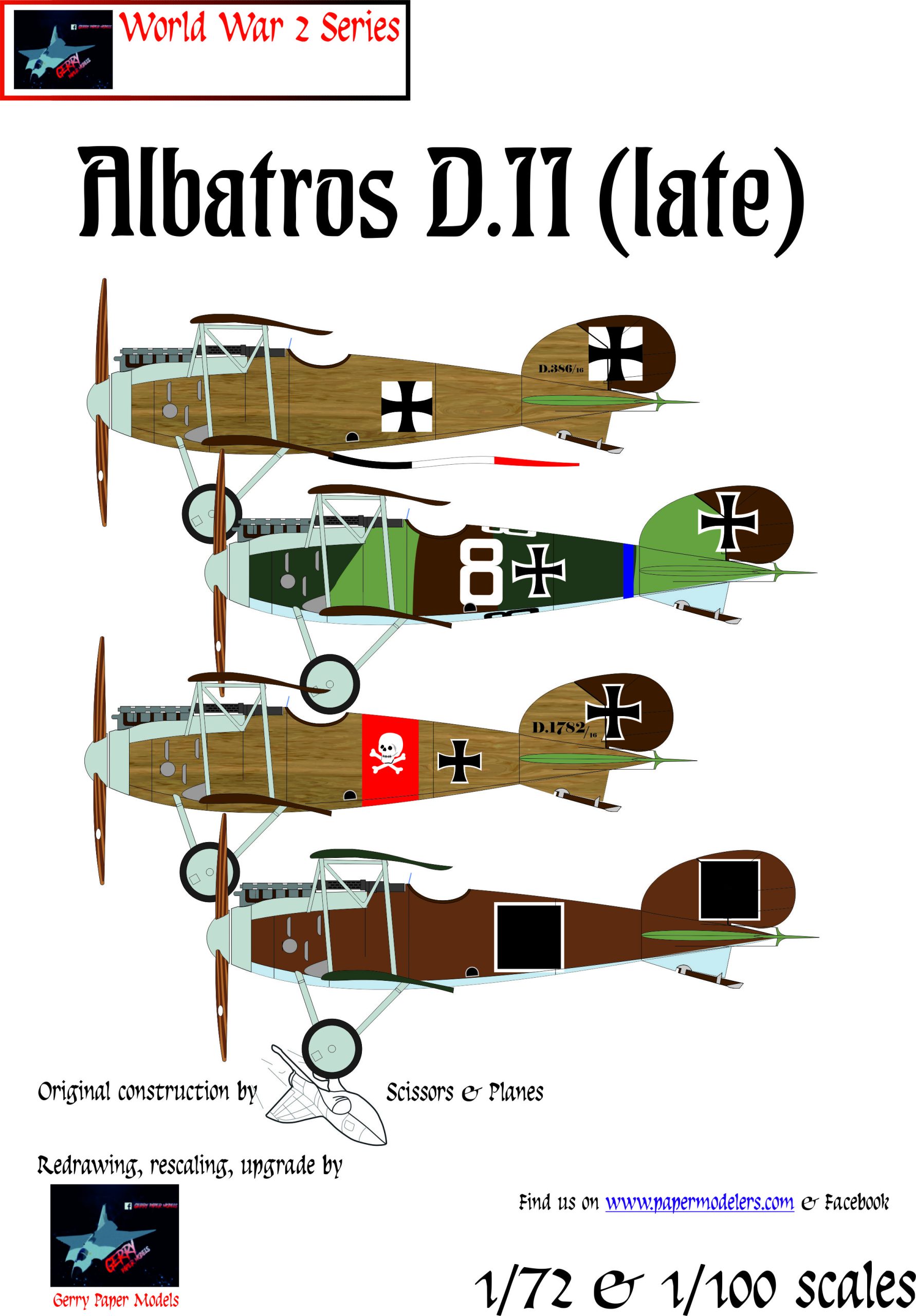 This repaint bundle of the Scissors and Planes kit by Gerry Paper Models contains four kits of Albatros D.II (late) .