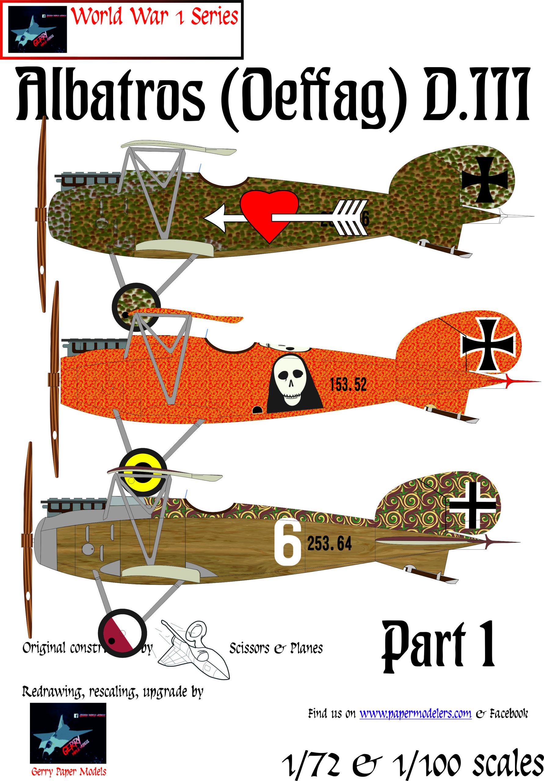 This repaint bundle of the Scissors and Planes kit by Gerry Paper Models contains three kits of the Albatros (Oeffag) D.III Part 1.
