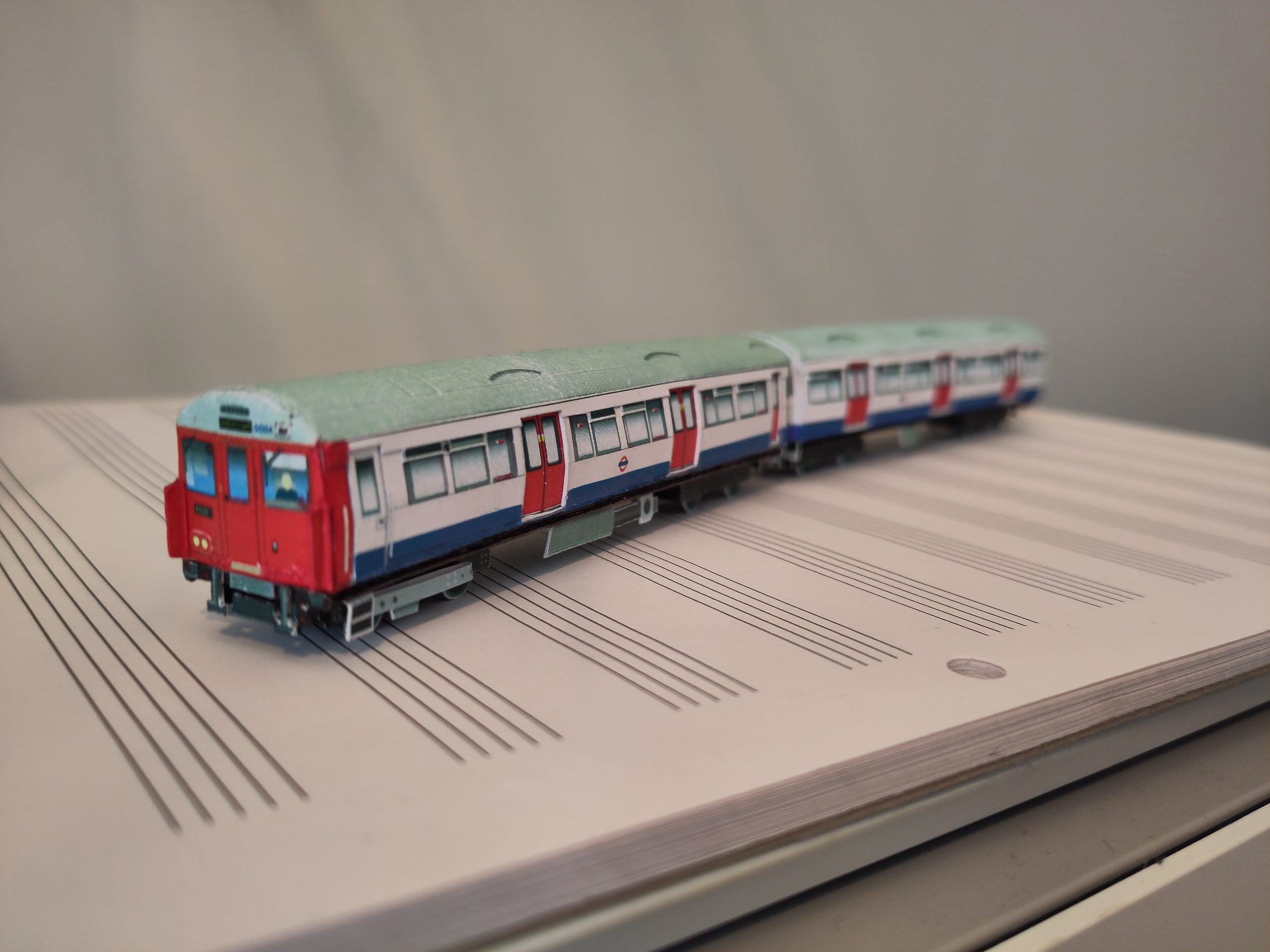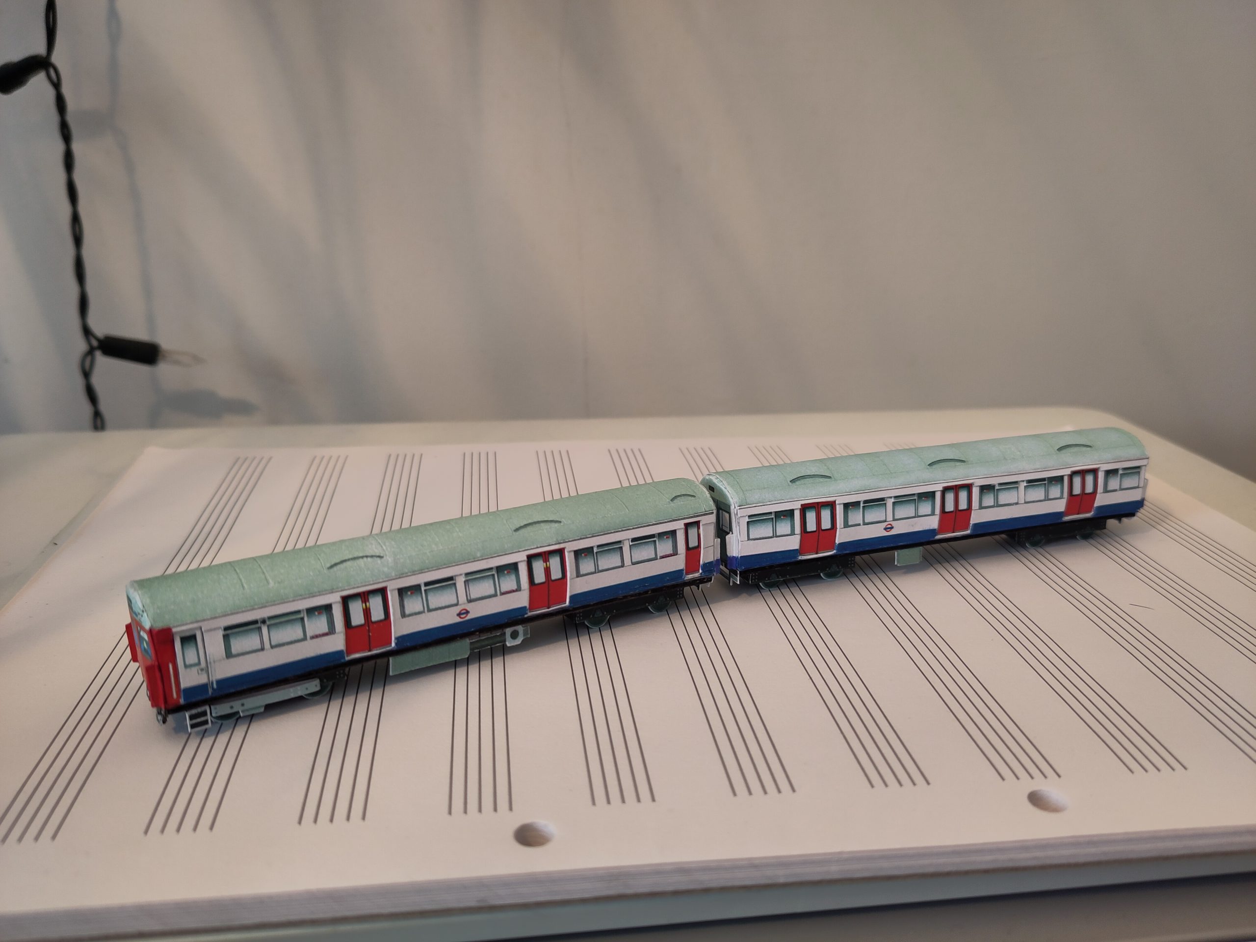1:148 N scale model of a London Underground ‘A’ Stock train in refurbished white, red and blue as applied from the 1990s. The A stock was built in two batches in 1960 and 1962 and was operated on the Metropolitan and East London lines in London.