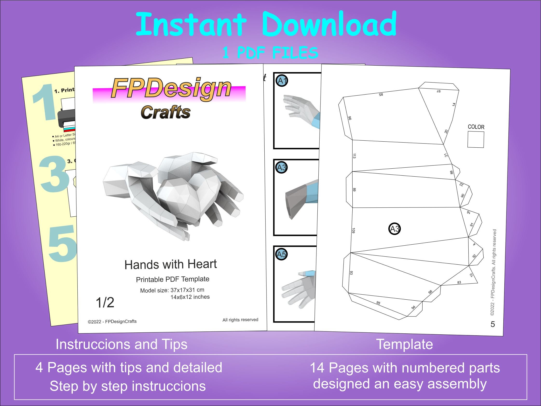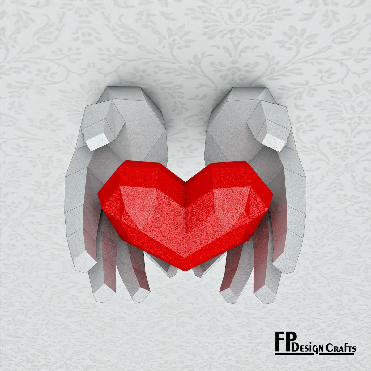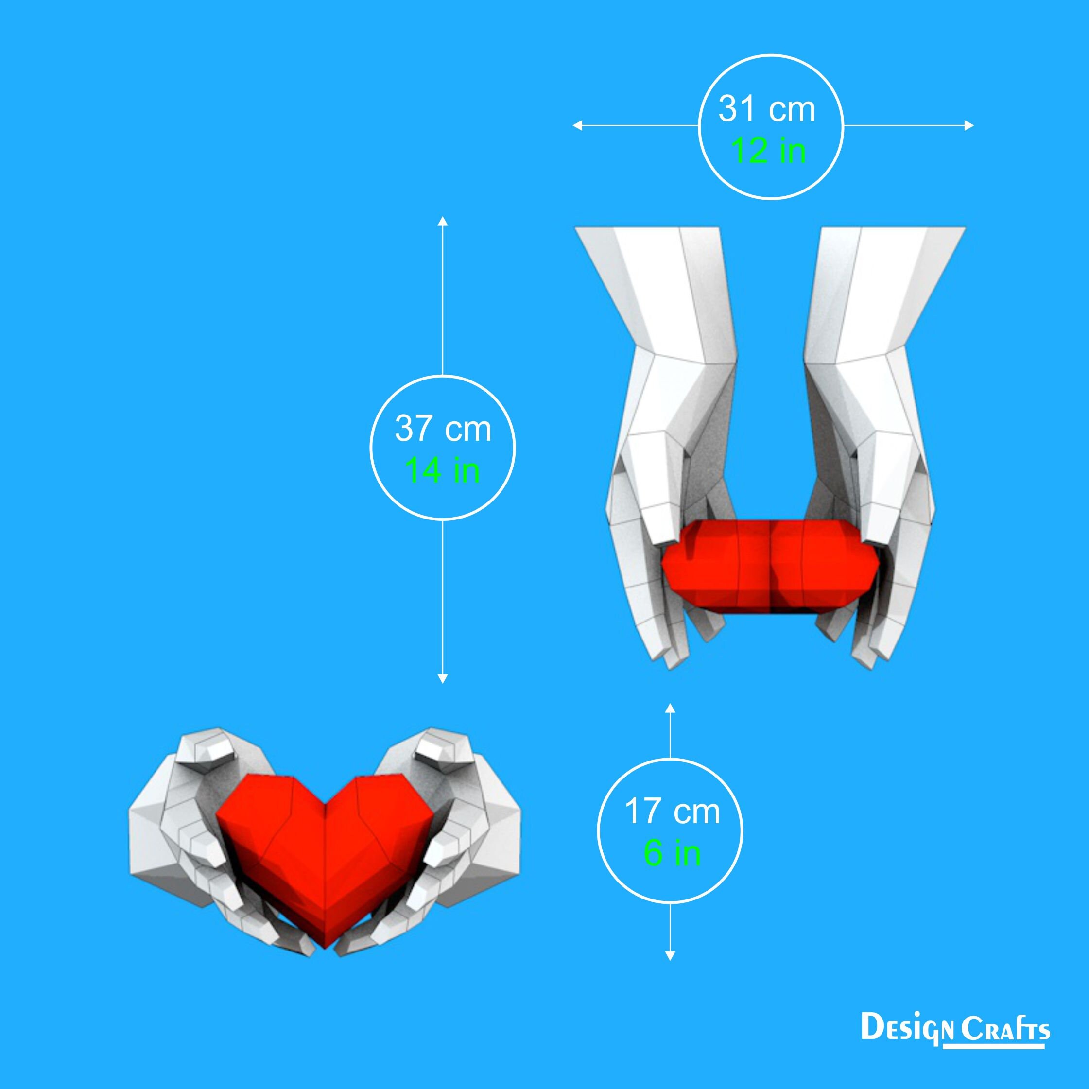 Heart with hands, 3D DIY origami, Sculpture papercraft, low poly heart, DIY love gift
