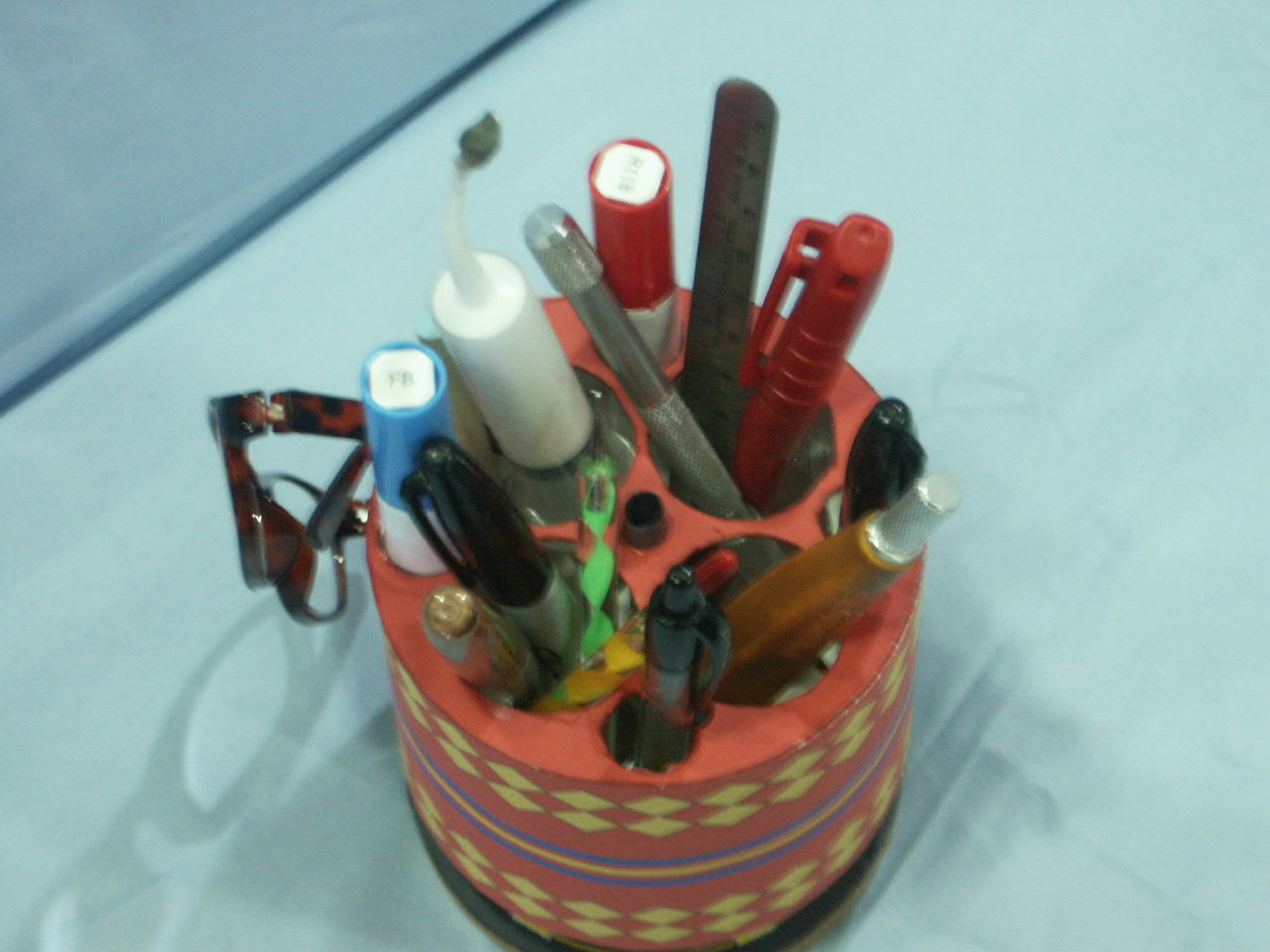 Designed to remove the markers, knives, scoring tools from laying in the way, on the desk top.